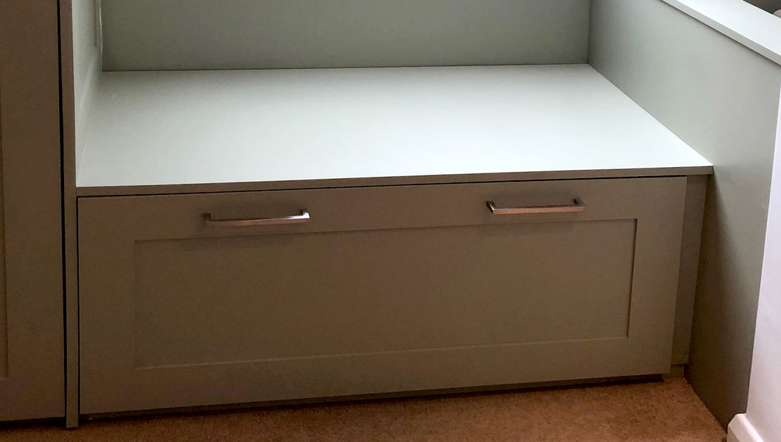 The result is an attractive and accessible storage solution, with ample space behind the elegant front. Now, items are easily stored and hidden, transforming the bedroom into a serene and organised retreat that truly reflects the couple’s style.